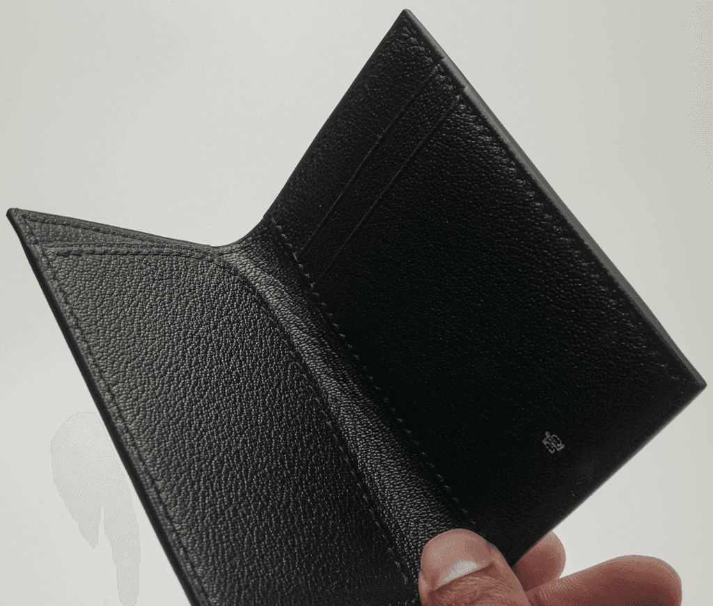This compact wallet can comfortably stash 6-8 cards and has a small flap to secure a few bills. As with all of our products, every step is meticulously crafted by hand—including the stitching. All pockets and panels are lined with chevre (goatskin) leather and every edge is hand painted and polished in multiple stages to ensure the longevity of this wallet. To request a quote and to inquire about any customizations, please click below. Please note that this product is made-to-order and production can take up to 4 weeks depending on the waitlist.