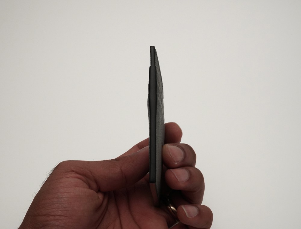 This cardholder comes standard with 3 pockets per side and a main center pocket.